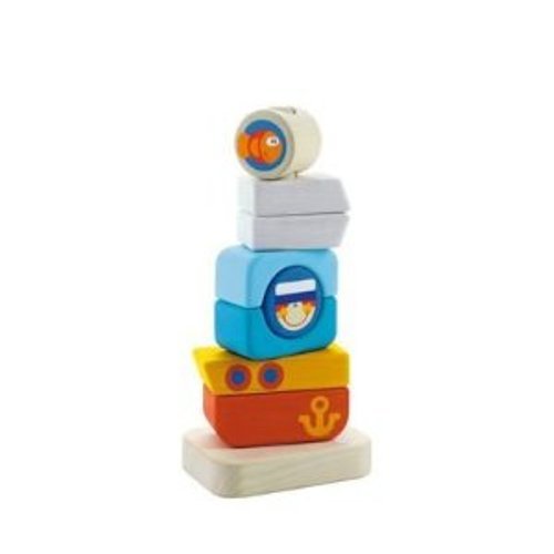Ahoy matey. You little one's imagination can sail away with this adorable stacking toy from Sevi. Stack and restack to create a submarine or a pleasure cruiser, this wood toy is made with materials and vegetable dye colors.