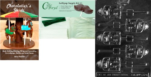 Cybrtrayd Nutcracker Lolly Chocolate Mold with Chocolatier's Bundle of 25 Lollipop Sticks, 25 Cello Bags, 25 Green Twist Ties and Chocolatier's Guide