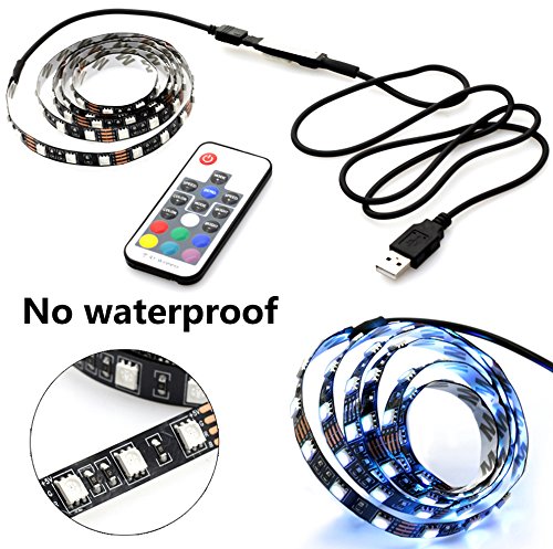 Black PCB TV BackLight Kit, LED Light,Multi-color 60leds Flexible 5050 RGB USB LED Strip Light with 5v USB Cable and 17key RF Controller For TV/PC/Laptop Background Lighting (Non Waterproof, 78inch)