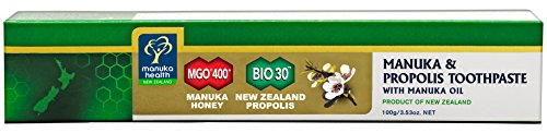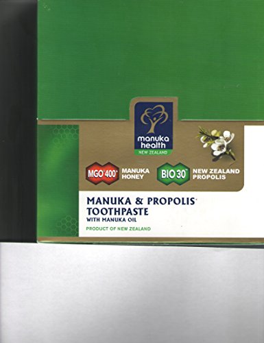Studio : Manuka Health New Zealand Publisher : Manuka Health New Zealand Binding : Health and Beauty Product Description Manuka honey mgo400 bio30 nz propolis toothpaste - 3.53 oz. (100 g)a pack of 12 units. Manuka Health ltd, new Zealand in their toothpaste combines three natural ingredients: Manuka honey, Manuka oil and propolis to support good oral health. Bio30 new Zealand propolis supports good oral hygiene due to its exceptionally high bio flavonoids levels, which are independently certified to be at least 30 mg/kg (bio30). The unique activity of the mgo 400 Manuka honey and Manuka oil work to support healthy gums and teeth. The addition of essential oils and herbs provide a great taste and leave your teeth feeling fresh and clean. Manuka propolis toothpaste contains no fluoride or preservatives. No fluoride no preservatives no sodium lauryl sulfates (sls)this toothpaste is unique on us market. It contains no sodium laurel sulfate, no fluoride, no preservatives. Only active bio30 bee propolis and mgo 400 Manuka honey works for teeth and mouth disease prevention. This is almost medicinal toothpaste. This is not an overnight miracle , this is natural components toothpaste with bee propolis and Manuka honey inside. If you have no idea that these two components are, just skip it and do not buy that toothpaste, it's a waste of your money. This toothpaste is not a candy to like it but a unique synergy of very rare collected in new Zealand natural components : Manuka honey , Manuka oil and bee propolis. Let me finish with that: Manuka honey toothpaste is for advanced, smart and educated customers who are looking for mouth disease prevention, who might be in contact with infectious environment. 0