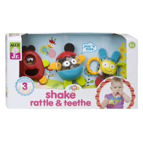 - Includes 3 buddies with teether limbs and shake and roll rattles