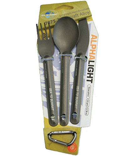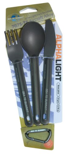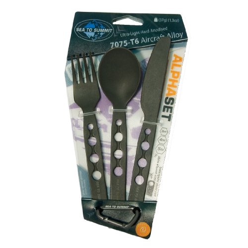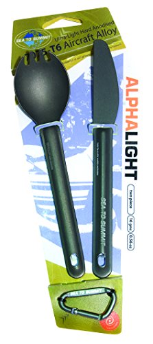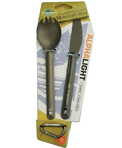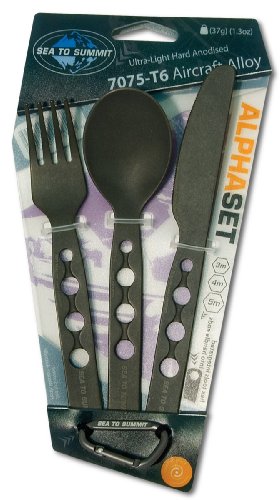 Studio : Sea to Summit Publisher : Sea to Summit Product Description The AlphaLight Cutlery uses a durable hard-anodized aircraft grade aluminum combined with a sleek-yet-strong shape to create an extremely lightweight utensil at a surprisingly affordable price. By hard anodizing the aluminum it forms a kind of 'exoskeleton', so the utensils can be slimmer and lighter. This hardened shell also encapsulates the aluminum, to eliminate the risk of the alloy leaching into food. 0