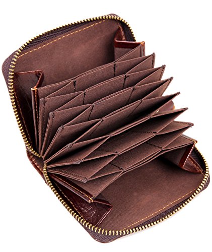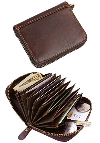 -. Feature : RFID BLOCKING - equipped with top RFID Secure Technology, engineered specifcially to protect your Credit/Debit Card, Passport, ID Card, and Driver License (all 13.56 MHz frequency RFID chip info), protect you from undetectable identity theft, give you peace of mind when traveling. / COME WITH FREE KEYCHAIN / Capacity - 8 Quick Access Card Slots, 2 Coin and Money Pockets / GENUINE FULL GRAIN LEATHER - strongest and most durable leather, ages beautifully, the more you use it, the better and more unique it looks / Wallet Size - 4.1 Inches X 3.4 Inches, Accordion style with zipper for quick access