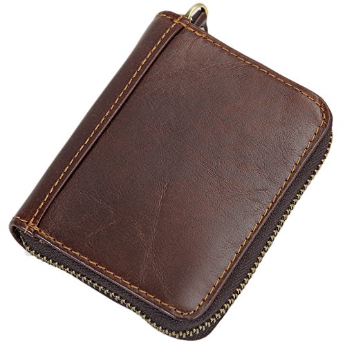 -. Title : Men's RFID Block Genuine Leather Secure Credit Card Holder Zip Wallet w Keychain