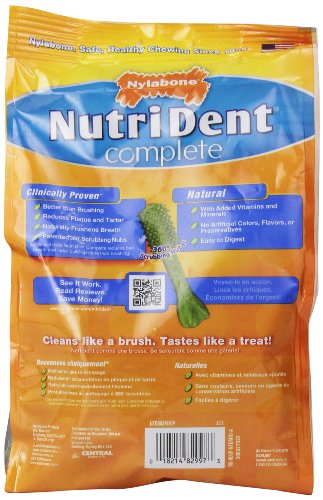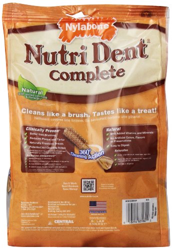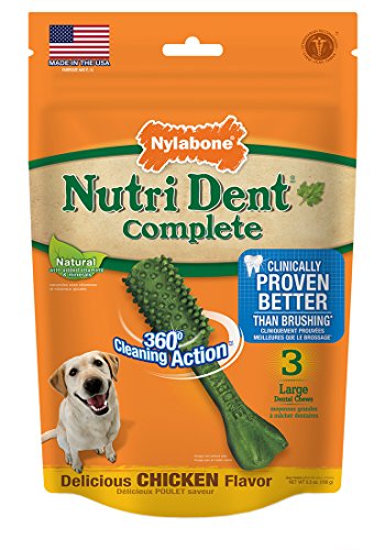 -. Binding : Misc. -. Brand : Nylabone -. Feature : Made in the USA / Great tasting, savory filet mignon / Gluten-free / Clinically proven to be better than brushing / Reduces plaque and tartar -. Label : Nylabone -. Manufacturer : Nylabone -. PackageQuantity : 1 -. ProductGroup : Pet Products -. ProductTypeName : PET_SUPPLIES -. Publisher : Nylabone -. Studio : Nylabone -. Title : Nylabone Nutri Dent Complete Dog Treat Bones for Large Dogs up to 50 Pounds