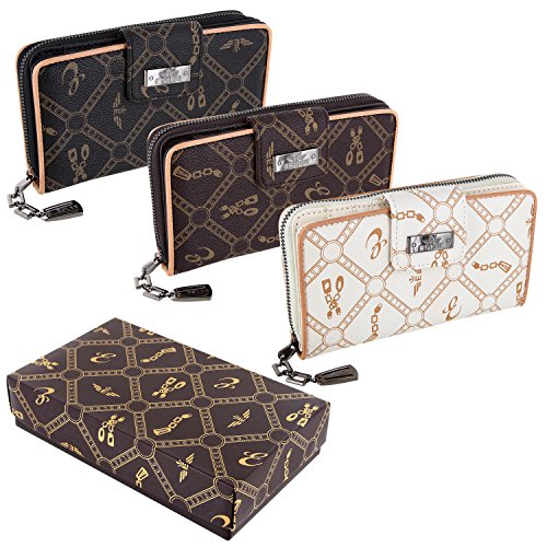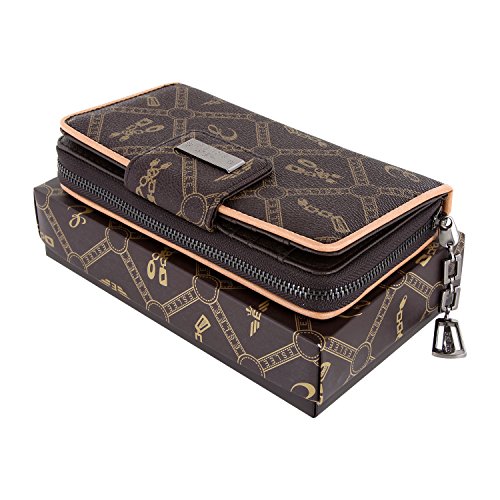 -. Feature : Damengeldbörse aus Kunstleder mit sehr viel Platz / Die Geldbörse hat im vorderen Teil 4 Einsteckfächer, 11 Kartenfächer und dahinter ein Geldscheinfach / Das Hauptfach hat einen Reißverschluss, etliche Einsteckfächer und ein Münzfach mit Reißverschluss / Zum sicheren Verschließen dient ein Überschlag mit Druckknopf / Maße unbefüllt ca. 19 x 10,5 x 3,5 cm - Lieferung in einem schicken Geschenkkarton