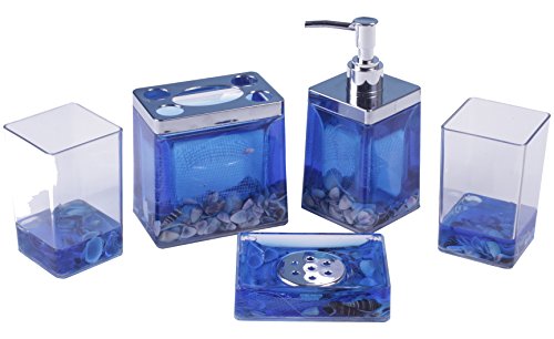 -. Title : AMC 5pc Acrylic Bathroom Accessory Set w/ Ocean and ocean shell Design, Blue