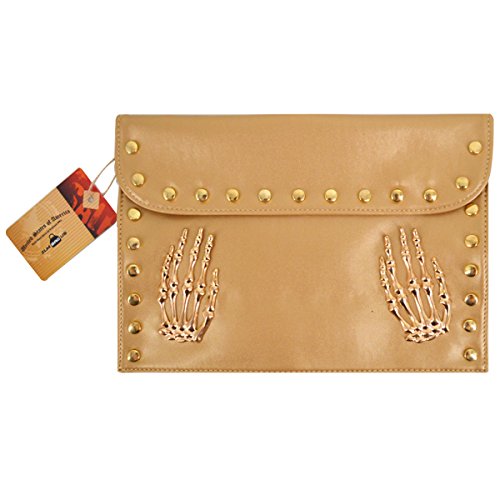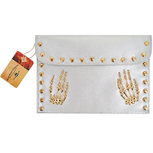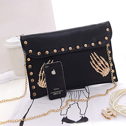 Main Features: Gold tone hand bone decor and chic metal rivets, stylish and fancy design, perfect for carrying out.