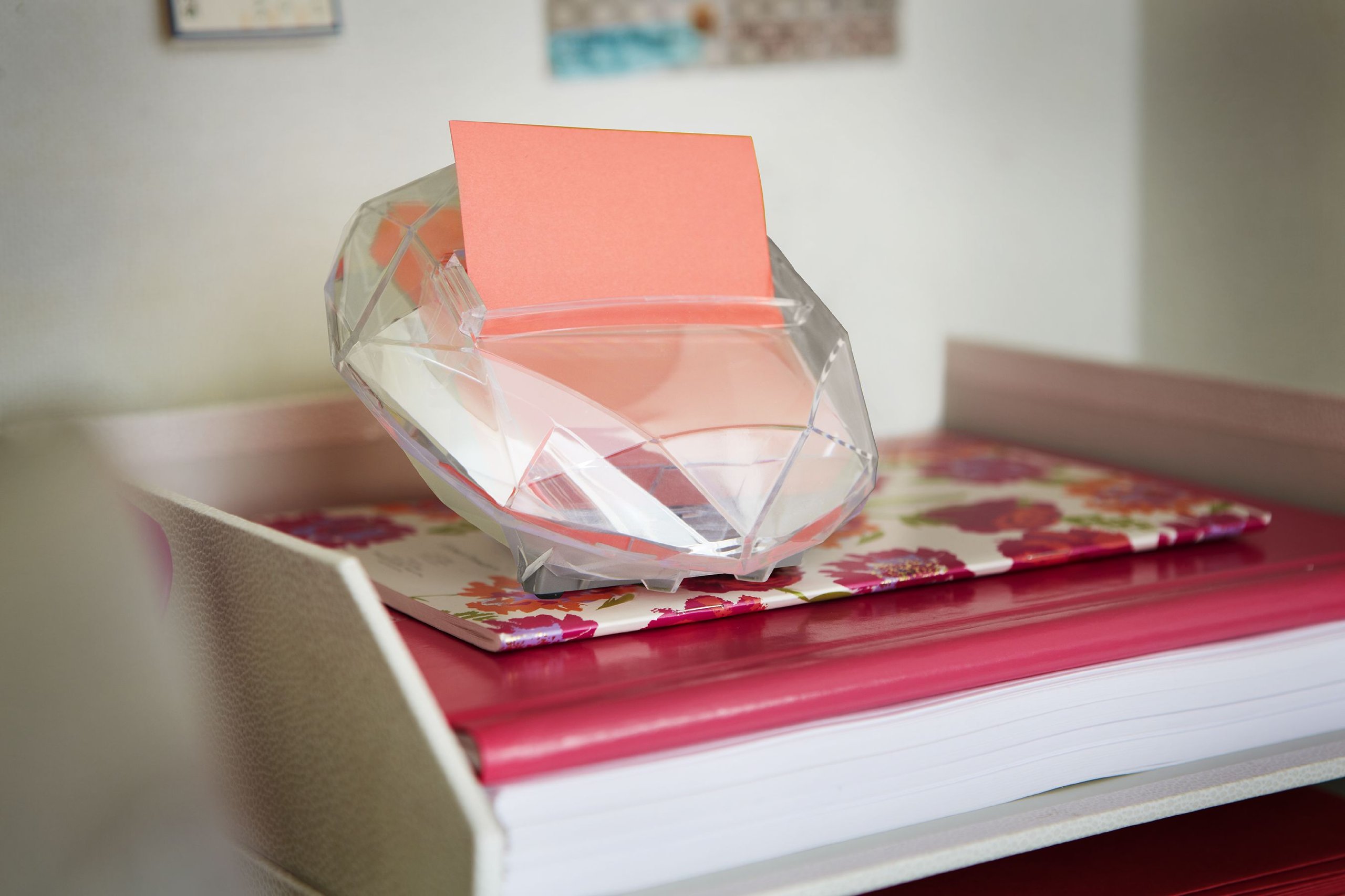 Just watching and having fun! Dispenser for unique post-it (R) pop-up note that colors desk colorfully.