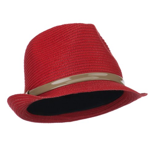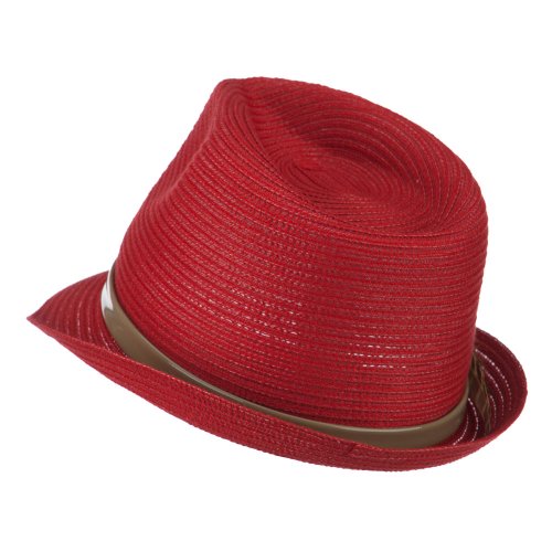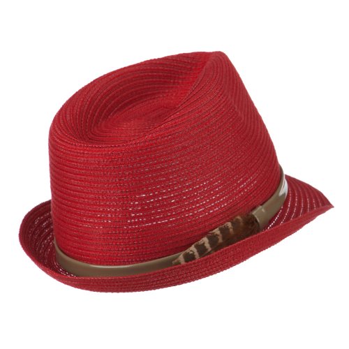 -. Title : Women's Feather Accent Leatherette Band Fedora - Coral