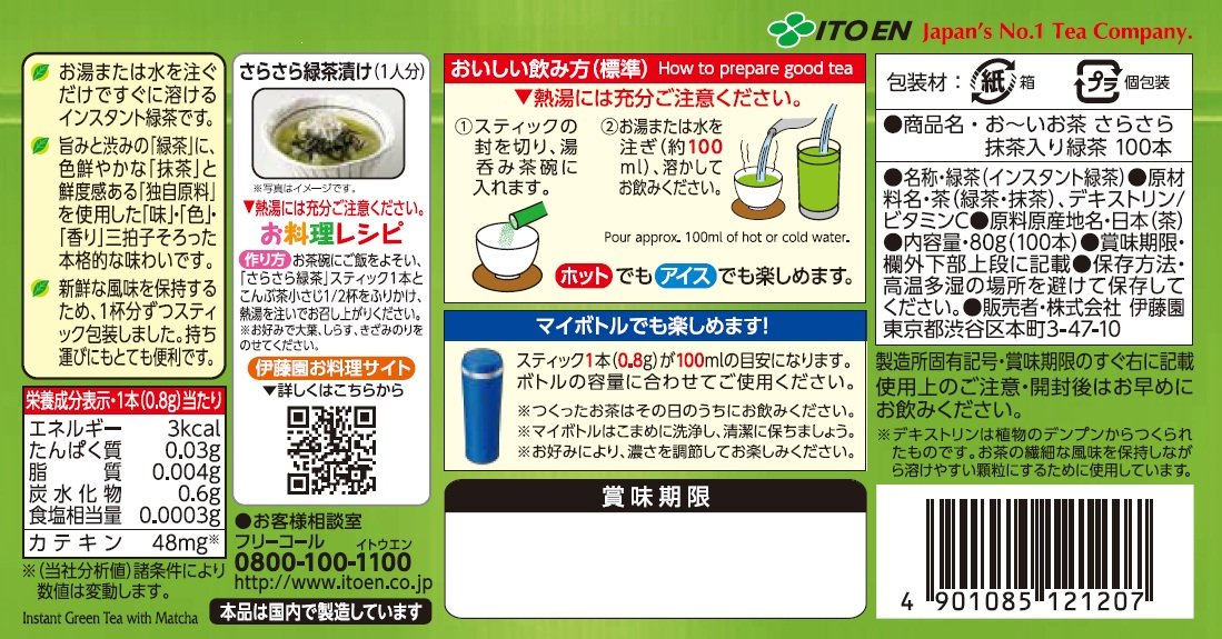原材料:茶(緑茶・抹茶)、デキストリン、ビタミンC