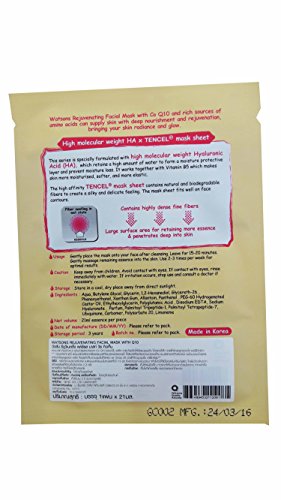 4 Mask Sheets of Watsons Rejuvenating Facial Mask with Co Q10 and rich sources of amino acids. Bringing your skin radiance and glow. (21 ml essence/ sheet)