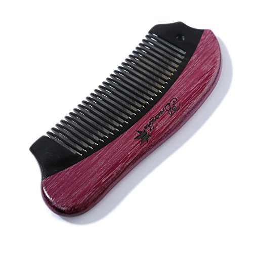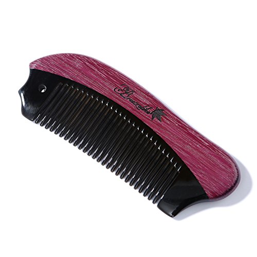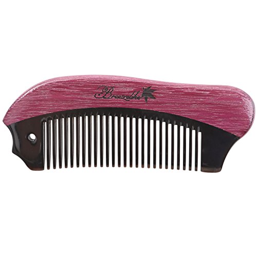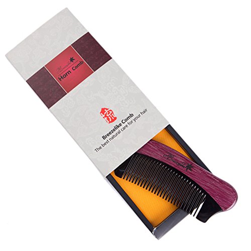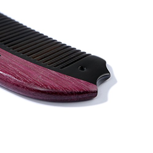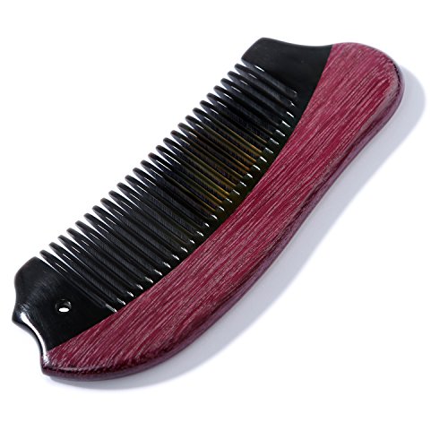 Breezelike No Static Fish Shaped Black Buffalo Horn with Purpleheart Wood Pocket Comb