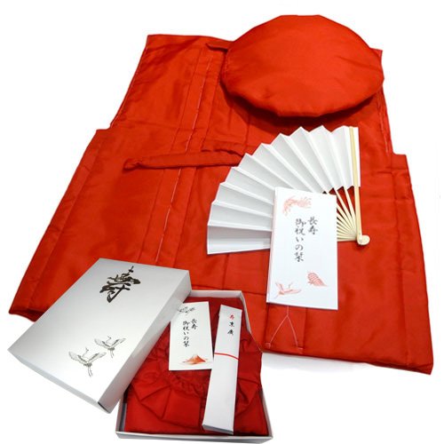 -. Title : 【日本製】還暦祝い 赤色ちゃんちゃんこセット (ちゃんちゃんこ・大黒帽・扇子・栞・化粧箱)