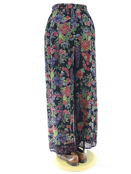 Ladies ブランド- カラー黒・赤・紫 メール便不可 コンディション★★★ 素材ポリエステルだと思われます 表記サイズ表記なし 実寸サイズ 着丈 90 cm ウエスト 68cm 〜 82cm (27インチ〜32インチ) レングス(股下) 25 インチ(63 cm) 股上 33 cm 太もも幅 34 cm 裾幅 25 cm ※ウエスト・ヒップ以外は平置き採寸【code】#c