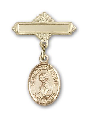 (Religious Obsession)/Baby Stationery/Stationery Sets/DIRECT FROM USA/ReligiousObsession's Gold Filled Baby Badge with St. Dominic Savio Charm and Polished Badge Pin