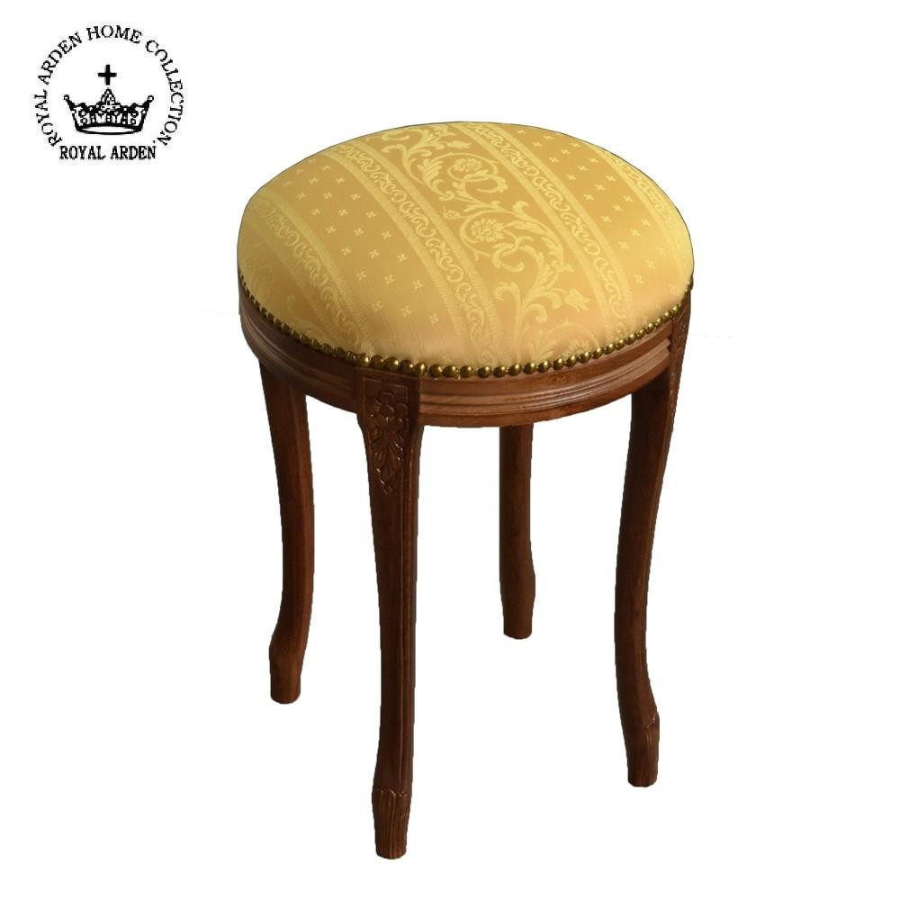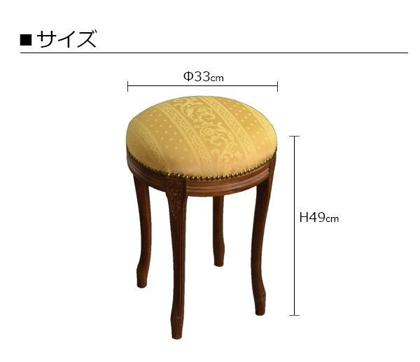 アンティーク調のおしゃれなスツールです。エレガントなお部屋にぴったり。 製造国:イタリア 素材・材質:脚:天然木ビーチ材ファブリック:ポリエステル56%、綿44% ※サプライヤー直送品 ご注文後3~4営業日後の出荷となります【商品名】ロイヤルアーデン イタリアスツール ラウンドスツール イエロー 茶脚 51442