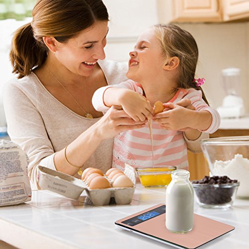 - ▶Anti-Fingerprint & Clear Backlit: cooking scale features gold plated stainless coating surface which adopted the anti-fingerprint technology for easy to clean. Its clear larger backlit lcd display to offer fastest easy reading
