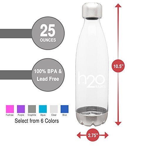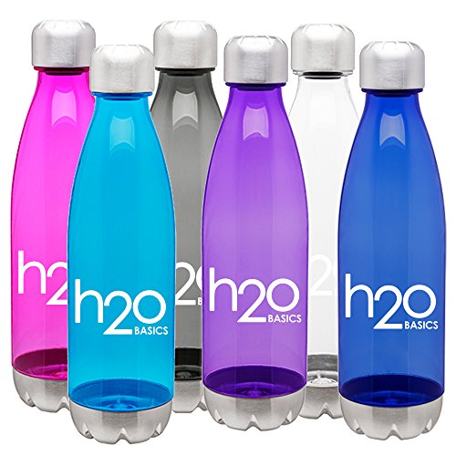 H2O Basics, hydration sports water bottles are made of Eastman Tritan Copolyester material that is accented with a stainless steel threaded cap and base providing a rust and leak proof water bottle