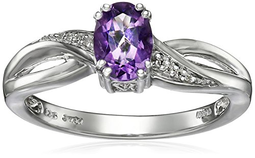 -. Title : Sterling Silver Amethyst Oval with Diamond Pendant Necklace, Earrings and Ring (Size 7) Box Set