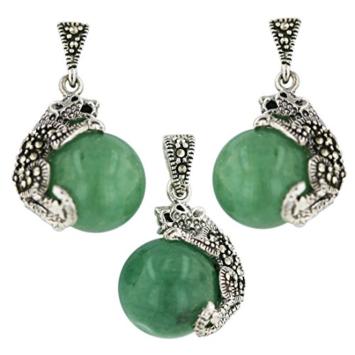 -. Feature : Cougar with Marcasite Hold the Jade / 12mm New Jade / .925 Sterling Silver Guaranteed / Dangle Style Earring Post for Pierced Ear / Product comes with 18 inches Chain