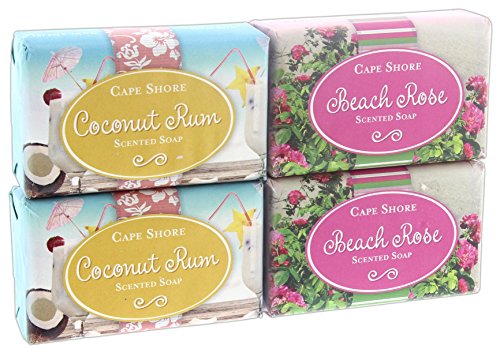 Bundle of Cape Shore 3 Ounce Scented Bar Soaps - Includes 2 Beach Rose and 2 Coconut Rum