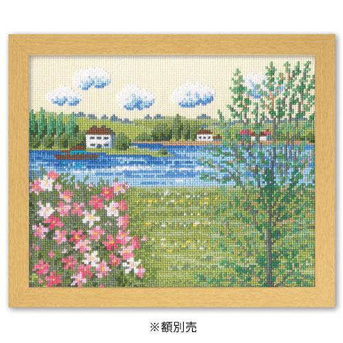 | 色とりどりのししゅう糸を使って、ヨーロッパの花風景を表現しました。技法はクロスステッチ。額(W-41)は別売り。技術レベルは中級~上級者向。 |