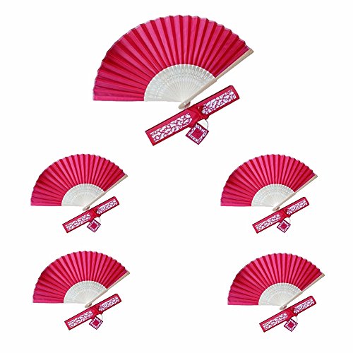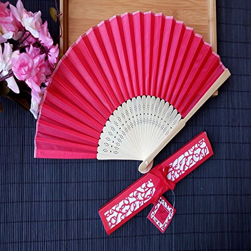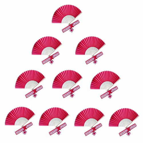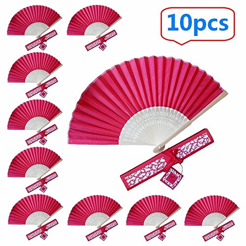 10pcs Folding Silk hand Fan versus Gift Box Party or wedding Gifts (red) WEN FEIYU