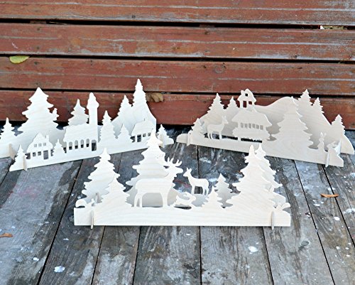 - Christmas light decor - the product is natural. Only birch plywood without any coating. Longtime store in a dark, dry place recommended. You can place it on a long windowsill all three elements or three windows one element each. You can combine elements as you want. You can place on a windows, dresser, fireplace, festive table as a wooden candlestick or on the floor.