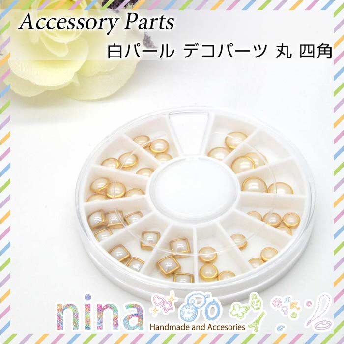■商品名:白パール デコパーツ 丸 四角