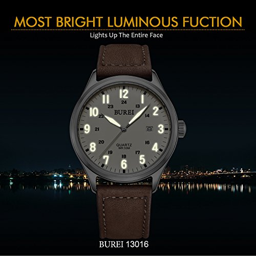 -. Title : (バオショ)BUREI メンズ 腕時計 アナログ表示 日付 シンプル クォーツムーブメント ブラックケース ホワイト文字盤