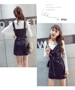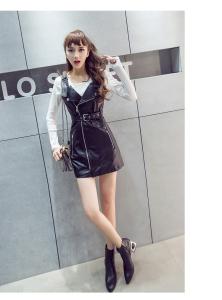 レザーワンピース ミニワンピース タイト ノースリーブ カットソー 長袖 ツーピース プチプラ 秋冬 ジップ