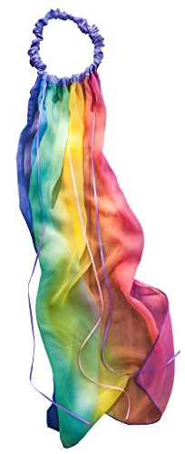 -. Feature : Soft georgette rainbow silk and ribbons, flowing from a lavender silk garland / For princesses, genies, little brides, or whatever your imagination desires / Garland is 22 inches around and easily stretches to fit / Rainbow veil is 30 inches long and made of silk