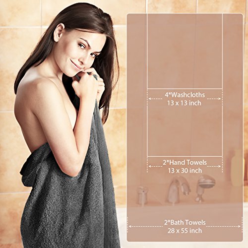 Studio : Homitt Publisher : Homitt Product Description It is an uncomfortable thing to feel wet or get sweat after showing, spa or even work out in the gym. Especially the water attached to skin is hard to dry off by your towel. You would be more likely to catch a cold in the winter. So for your health and good mood, choose the proper towels. Premium Grade Quality Homitt 8-piece towel set is made of 100% cotton fabric, with the weaving technique of Siro twist yarn; fluffy towel set can stand up cycling use and wash without color bleeding over a long time. Do not worry about leaving lint and fading anymore after go through the dryer. Custom Made Cotton towel set is suitable for all people. Available in grey matched with 4 washcloths, 2 hand towels, and 2 extra-large bath towels. Lightweight, absorbent and enough coverage for you to wrap yourself softly when on swimming pool, bathroom or on the beach, drying off your body within shorter time. Health to Use These terry guest towel set can also be a decorative luxury look at bathroom or other needed places. Hypoallergenic, friendly to your skin, so it's a nice gift for your friends or the elders. Homitt superior towel set would bring an easy convenience to your daily life. Warranty Every Homitt product enjoys a 12-month worry-free guarantee 60 days money back Guarantee. Care Instruction Wash towels separately and use detergent along with proper amount of white vinegar or salt to decrease the risk of color fading (Before first use) Use warm water to wash towels in order to avoid color bleeding. Always use mild detergent when washing towels. Do not use fabric softeners in order to avoid fabric breaking. No bleaching. Do not iron. Do not over-dry the towels. Hanging in an area with good air flow Dry the towels immediately after washing them.