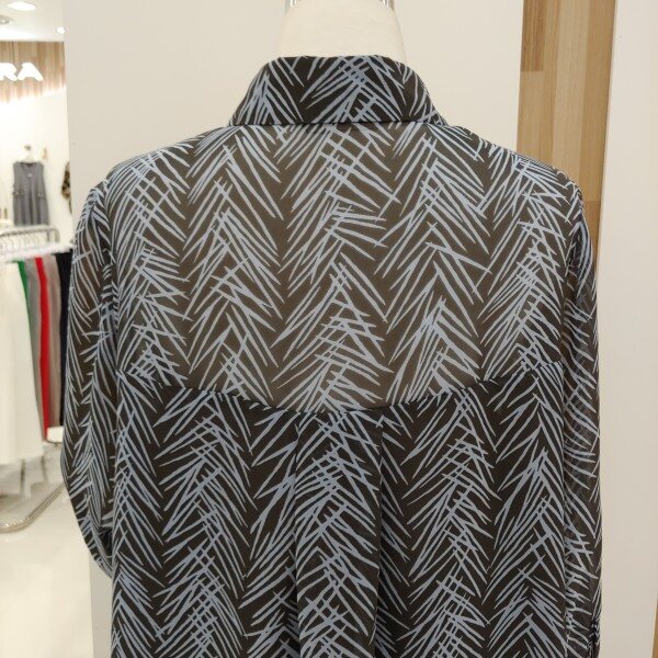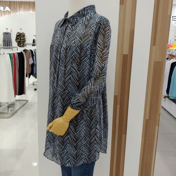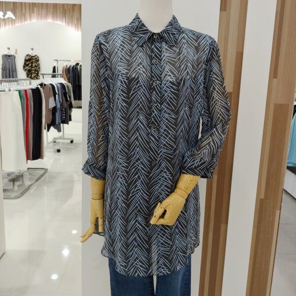 단정한 숄더라인이 몸매를 굉장히 날신해보이게 해드리고 새련된 패턴이 고급스러우며