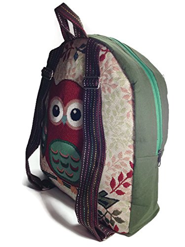 Title : Knapsack Backpack Owl 2 Sides Zipper Handmade Fabric Lightweight Green Color Beside