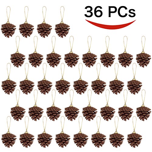 36 Hanging Real Pine Cones Ornaments for Christmas and Holiday Decorations by Joiedomi