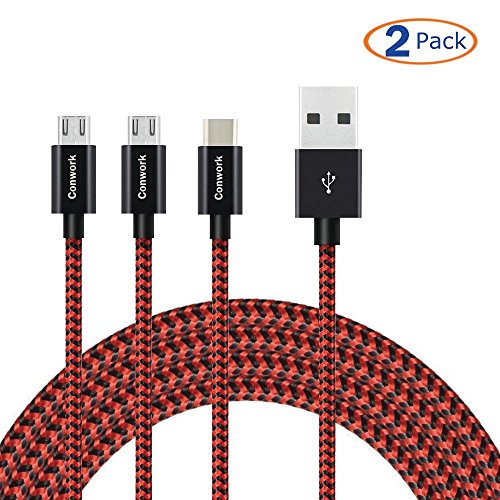 -. Title : Type C & Micro USB Cable [3 in 1], Conwork 2-Pack 6ft USB 2.0 Braided Multiple Charging Cable Alluminum Adapter Connector with Type C & 2 Micro USB for Universal Use