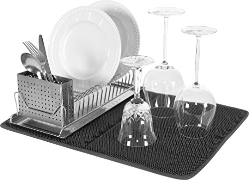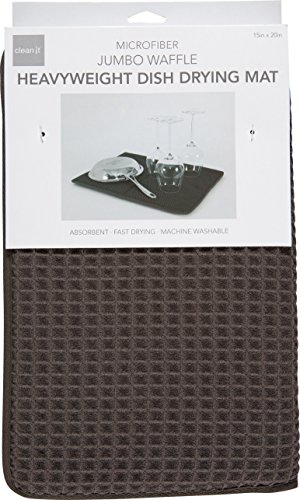 Studio : KAF Home Publisher : KAF Home Binding : Kitchen Product Description Clean It's Dish Drying Mat offers a soft surface for quickly air drying dinnerware, delicate crystal and stemware, even pots and pans. This large jumbo oversized Drying Mat offers ample space to dry more items at a time. Ultra absorbent, decorative and protective, the raised waffle design promotes increased airflow for faster drying times. The cushioned center wicks water away from dishes and eliminates soppy, wet counters. Perfect for air drying flatware, dinnerware, stemware, barware, and pots and pans, even draining produce after washing fruits and veggies, and more. Easy to use. Simply lay the Drying Mat flat on the countertop and place items to be dried on top. Folds for compact storage in a kitchen cabinet. Made from 100-percent microfiber heavyweight cotton. Fast drying, durable and reusable. Folds for compact storage. Machine washable in cool water and drip dry. 0