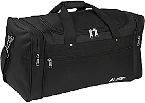 -. Feature : Duffel Team Sports Bag Travel Camping Lage Black 21" / Bag Measures 21.5" x 11.5" x 10" / Made of 600D x 600D Polyester / Two D-Rings for Optional Shoulder Straps (Included) / Dual Side Compartments