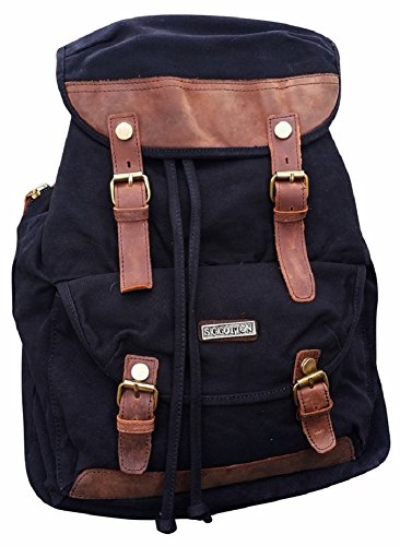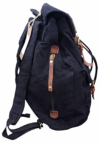 Title : Vintage"Colonial" Large Canvas Military Style Backpacks,Messager and Postman Bags(L) (Large, Black/Leather Rucksack)