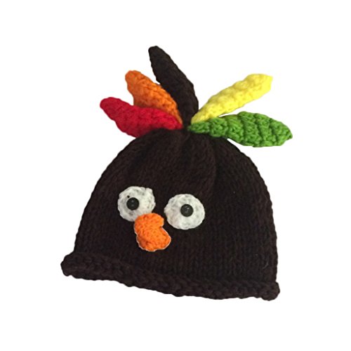 -. Feature : Fit for unisex baby within 0-6 months / Cute, Comfortable, Breathable and harmless / Handmade knitted crochet beanie hat costume, Dark Coffee Colored Turkey pattern design make it attractive and adorable / Perfect for memorable photography shoots, Halloween costume and Baby Shower gift / Care: Hand wash, let air dry and avoid scratching