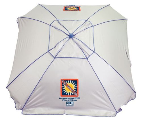 Innovative with great design, this total sun block foot umbrella has a square design for even more coverage. Can be used like a sun shelter. Integrated sand anchor with angle to lay umbrella down. Window included on panel to allow air and view. Real easy setup It is lightweight and portable with a carry bag with strap included. RIO Beach large Total Sun BlockTM Extreme ShadeTM is hard to beat in flexibility and sun protection. Use it in 2 positions-as a leaning shelter or a traditional umbrella. Made with our Total Sun BlockTM fabric, it is lab tested to block 99.8% UVA and UVB rays and is recommended by the Skin Cancer Foundation. Perfect for sporting events, beach, camping, and backyard. The unique sand and turf anchor system holds securely and is easy to set up. Open the zippered mesh window for a breeze. The 8' Total Sun BlockTM Extreme ShadeTM is surprisingly lightweight and portable with a carry bag, so you can have protection in all your favorite places.