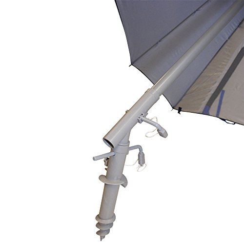 Innovative with great design, this total sun block 8 foot umbrella has a square design for even more coverage. Can be used like a sun shelter. Integrated sand anchor with angle to lay umbrella down. Window included on panel to allow air and view.