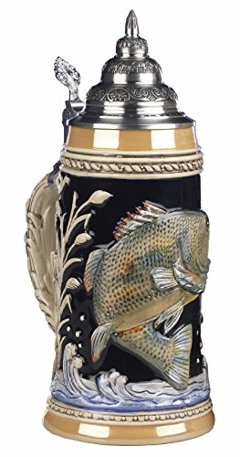 -. Title : Bierseidel Bierkrug "Angler Seidel" 0,75L, aus deutschem Edel- Feinsteinzeug, Handbemalt, Zinndeckel mit 97%Zinn