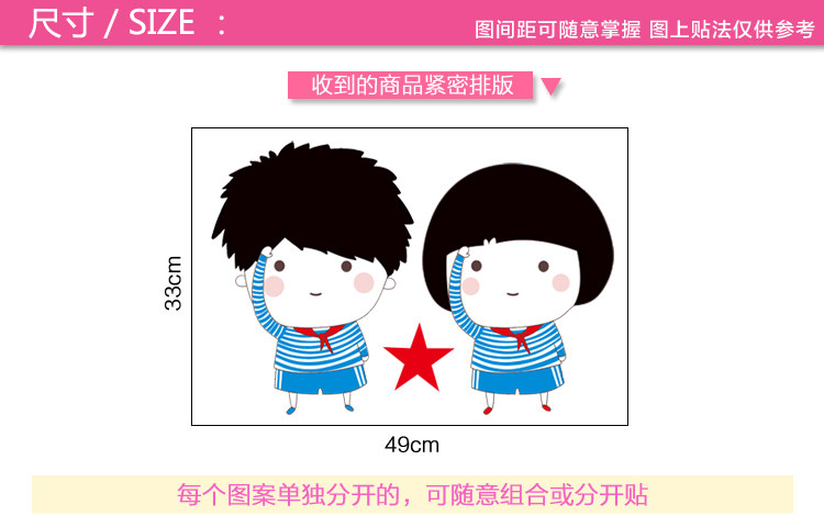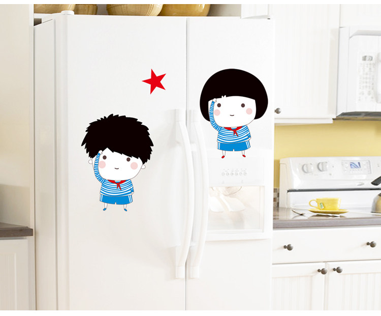 客厅卧室玻璃贴画可爱卡通门贴冰箱贴墙壁装饰墙贴纸少先队员