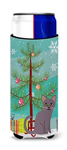 Caroline's Treasures Korat Cat Merry Christmas Tree Michelob Ultra Hugger For Slim Cans, Slim Can, Multicolor