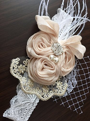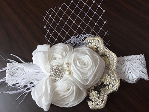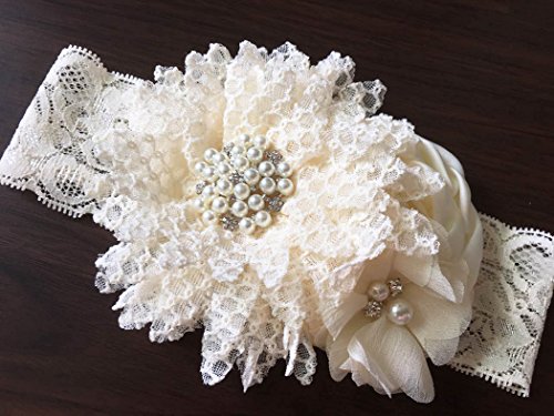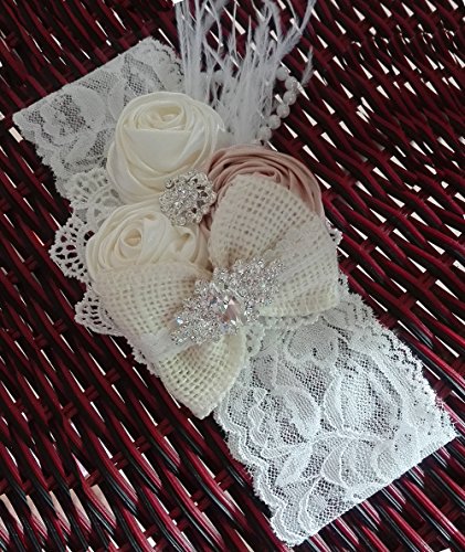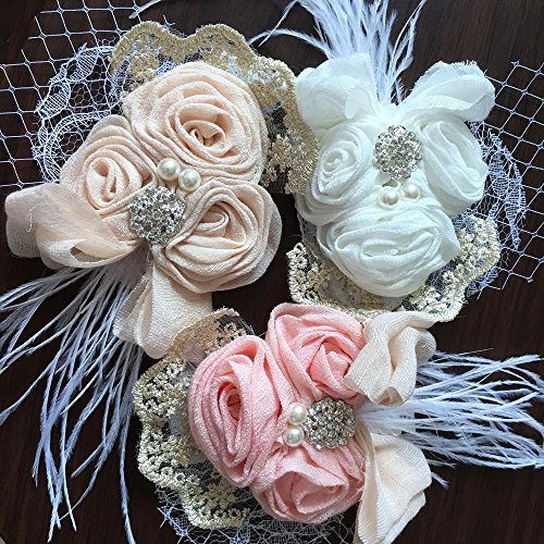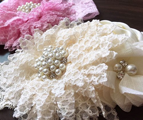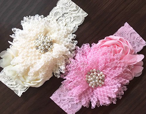 | DANMY Luxury Rhinestone Lace Headband Girls Rose Flowers Net Yarn Hair Band Baby Big Bow Hair a... |