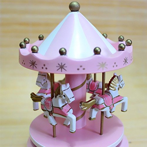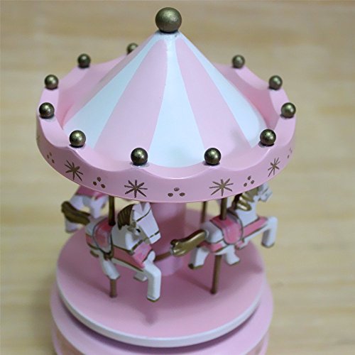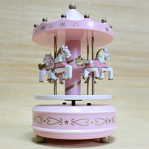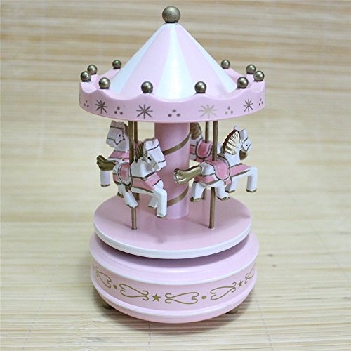 Title : Alytimes Carousel Wooden Music Box Wooden 4 Horses Rotating Music Box Birthday Valentine's Christmas Children Gifts Toy (Pink-Love)