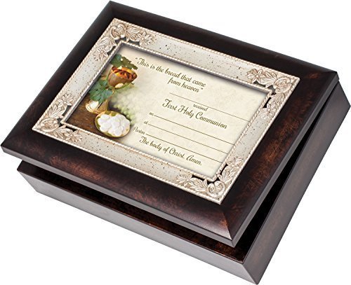 -. Title : First Communion Cottage Garden Italian Style Burlwood Finish with Decorative Inlay Jewelry Music Box - Plays Song Ave Maria by Cottage Garden